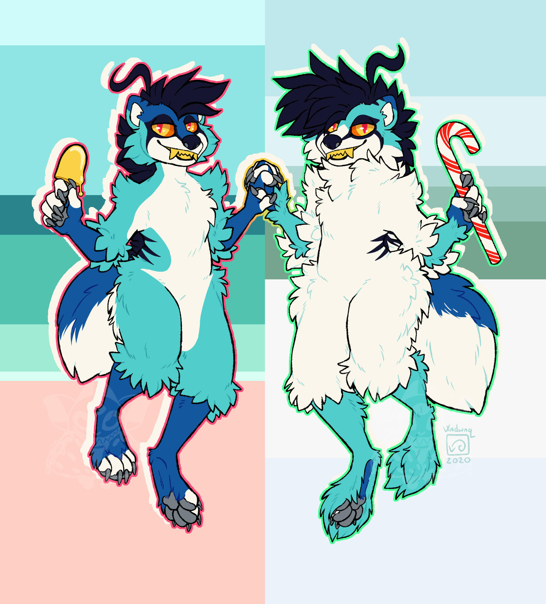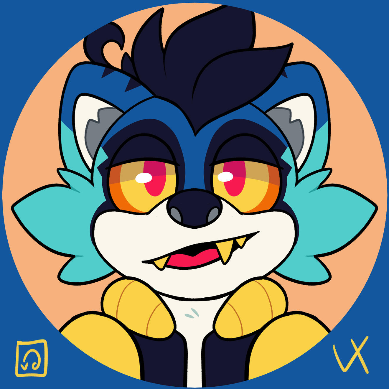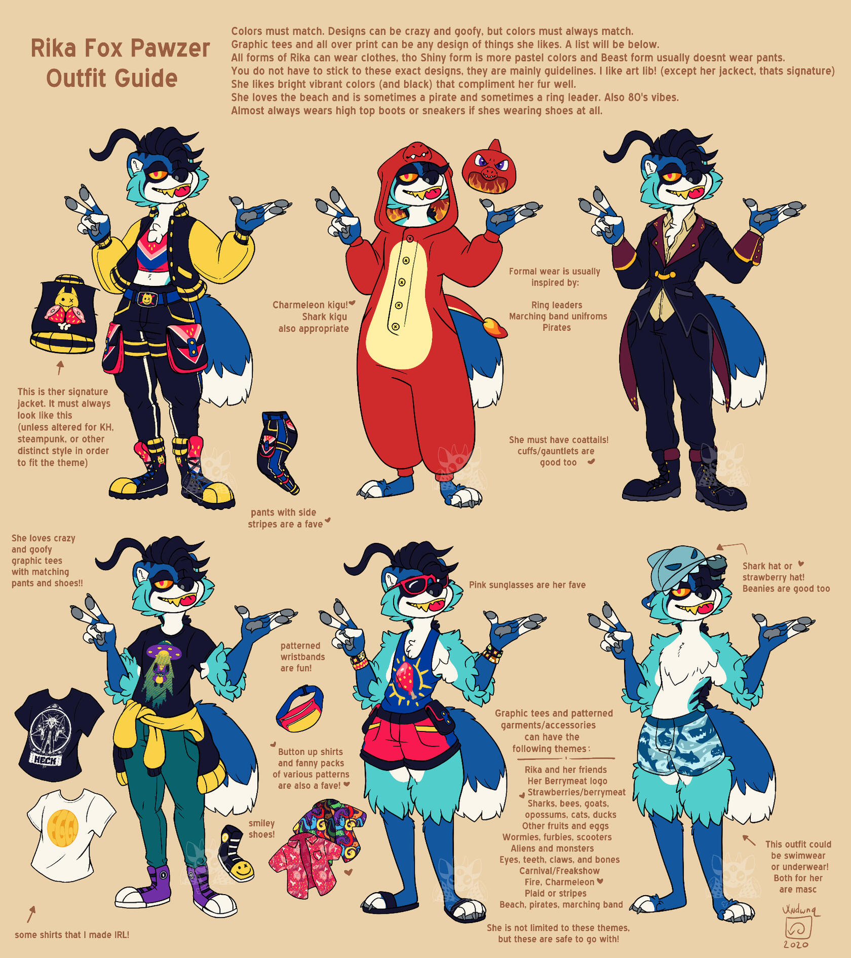 I fully support and encourage the idea of Shiny sonas. Pokémon have alternate color "shinies", so I believe we can too! Shiny Rika fully embraces the color pop summer vibes. Also, when someone who is not Vix (me, hello) is wearing Rika's fursuit, the badges worn will be shiny Rika! It is a fun and subtle way to know that I am relaxing somewhere but Rika is still out and about to make people smile. :)