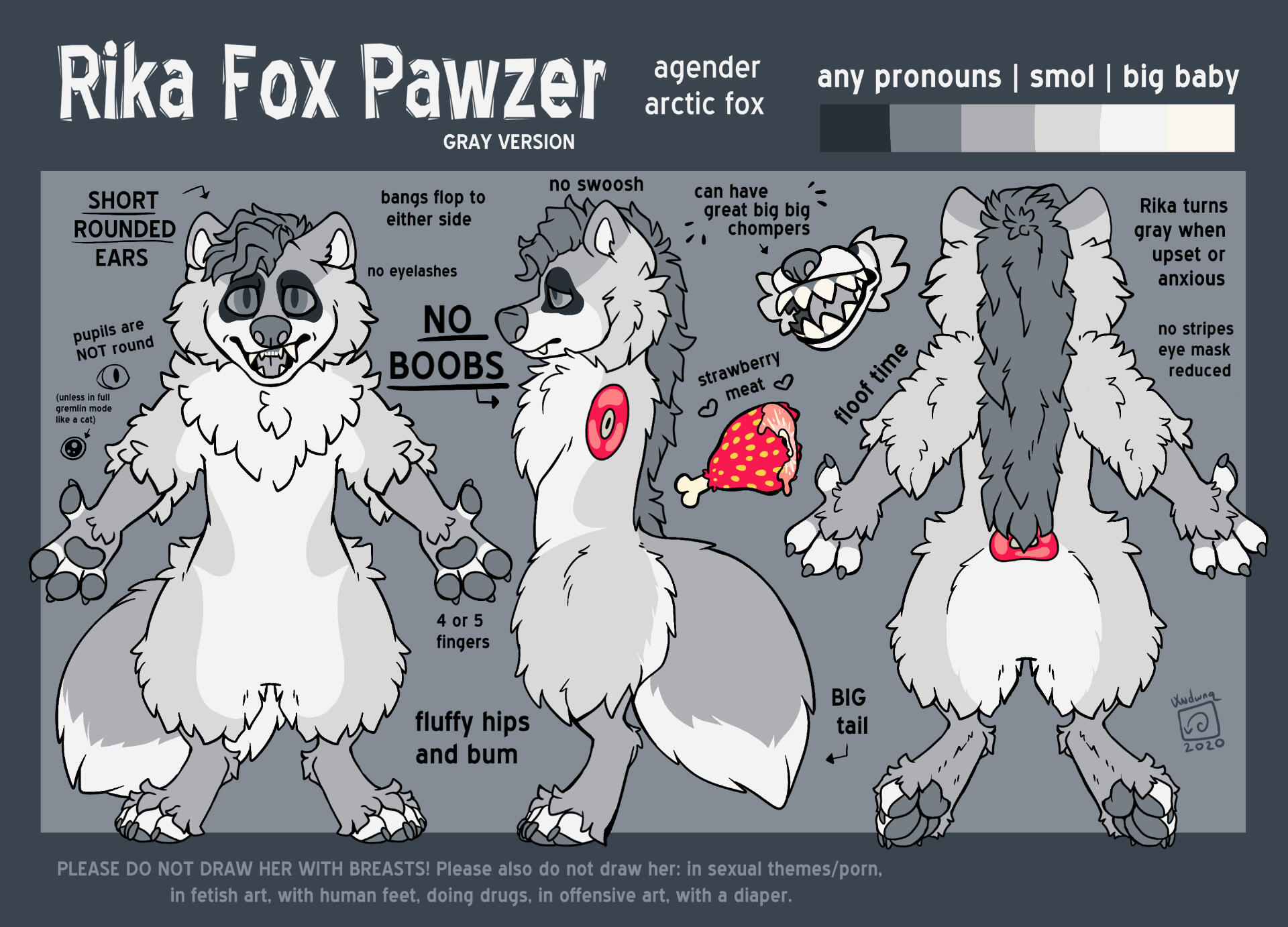 Please Refer to the reference sheet for the correct design of her arms, legs, and paws.